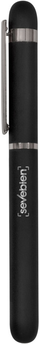 Metal. Cuerpo de aluminio. Roller. Apertura con tapa a presión. Clip y anillos metálicos color plata. Tinta Azul. Decapa color plata tanto en el cuerpo como en la tapa. Presentación en estuche con cierre magnético.