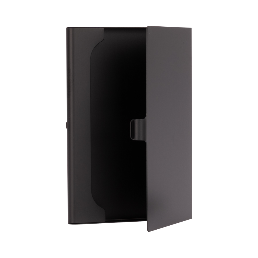 •Tamaño: Caja: 16.2 x 16.2 x 2.5 cm. / Porta-tarjetas: 9.3 x 6 x 0.8 cm. / Llavero: 8.2 x 2.8 x 0.5 cm. / Bolígrafo: Ø1 x 14 cm. •Colores: Negro (08). •Sugerencia de Impresión: Serigrafía, Grabado Láser, DTF. •Presentación: Elegante caja de carton color negro con tapa, interior cuna de EVA aterciopelada negra. Sobre funda de papel negro. •Material: Acero Inoxidable, Aluminio, Poliéster, papel, EVA, cartón.